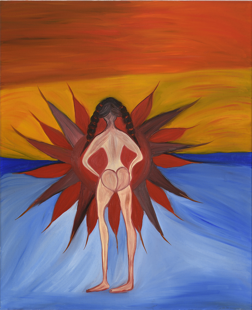 La Inthonkaew: Žena vstupující do slunce, olej na plátně, 2018